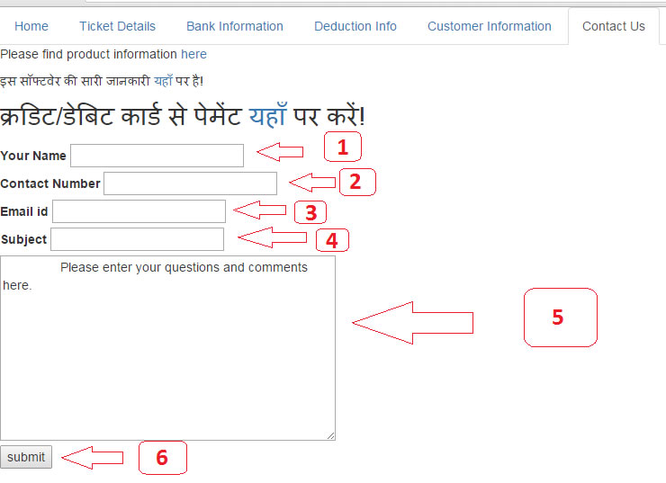 - येहे संदेश हमे भेजने के लिए सबमिट बटन पर क्लिक करें।
