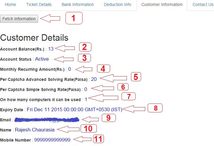 - यह आपके खाते का बैलेंस दिखाएगा जिसमे से आपके कॅप्चा और किराये का पैसा कटेगा। यह बैलेंस स्वचालित रूप से अद्यतन होता है।