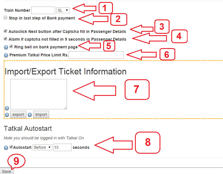 - इस विकल्प का चयन करने से, अगर यात्री विवरण पृष्ठ पर कैप्चा 9 सेकंड मैं नहीं भरा है तो यह अलार्म देगा ताकि आप तेजी से उस पृष्ठ परजाकर खुद कैप्चा भर सकें